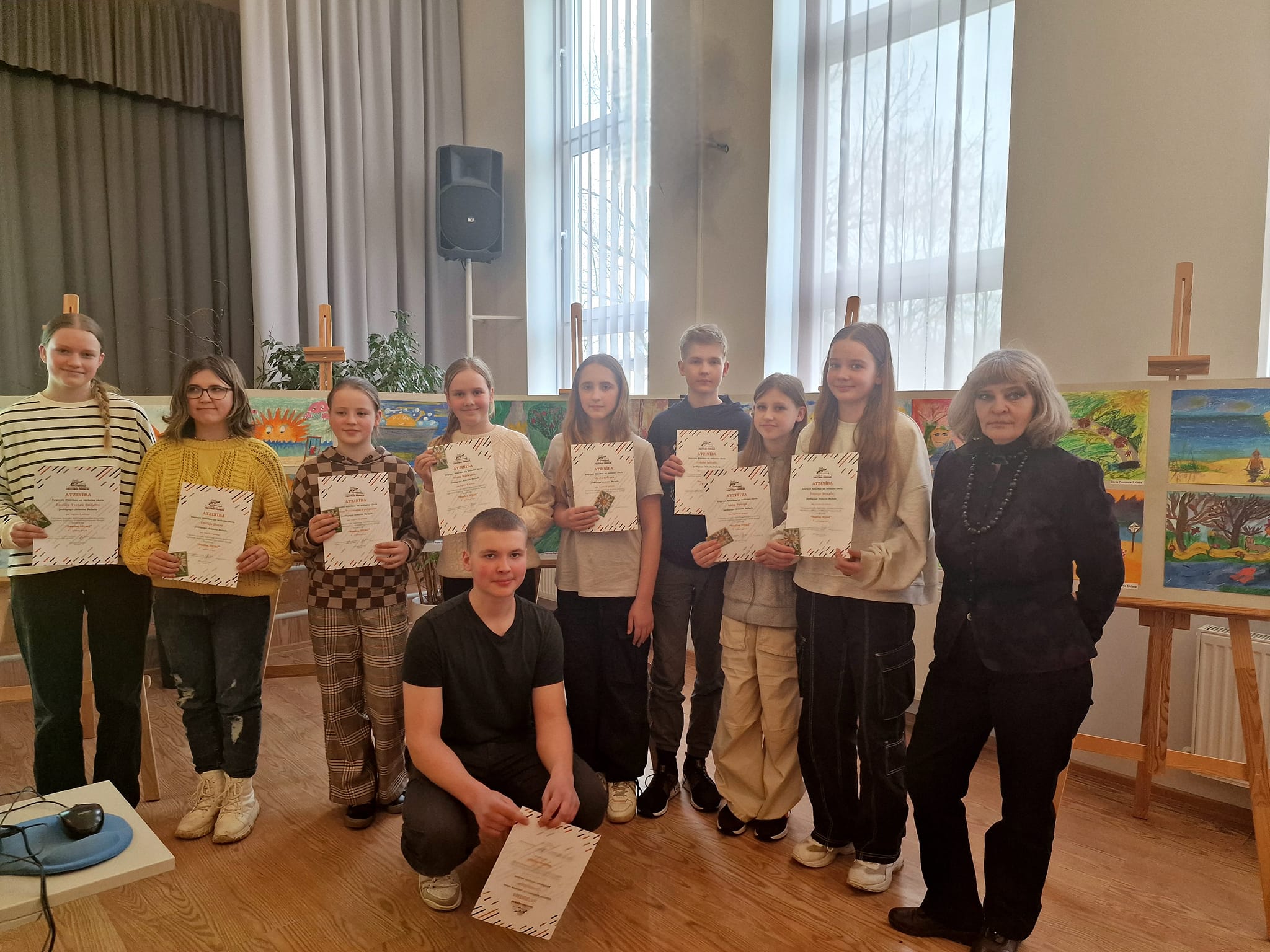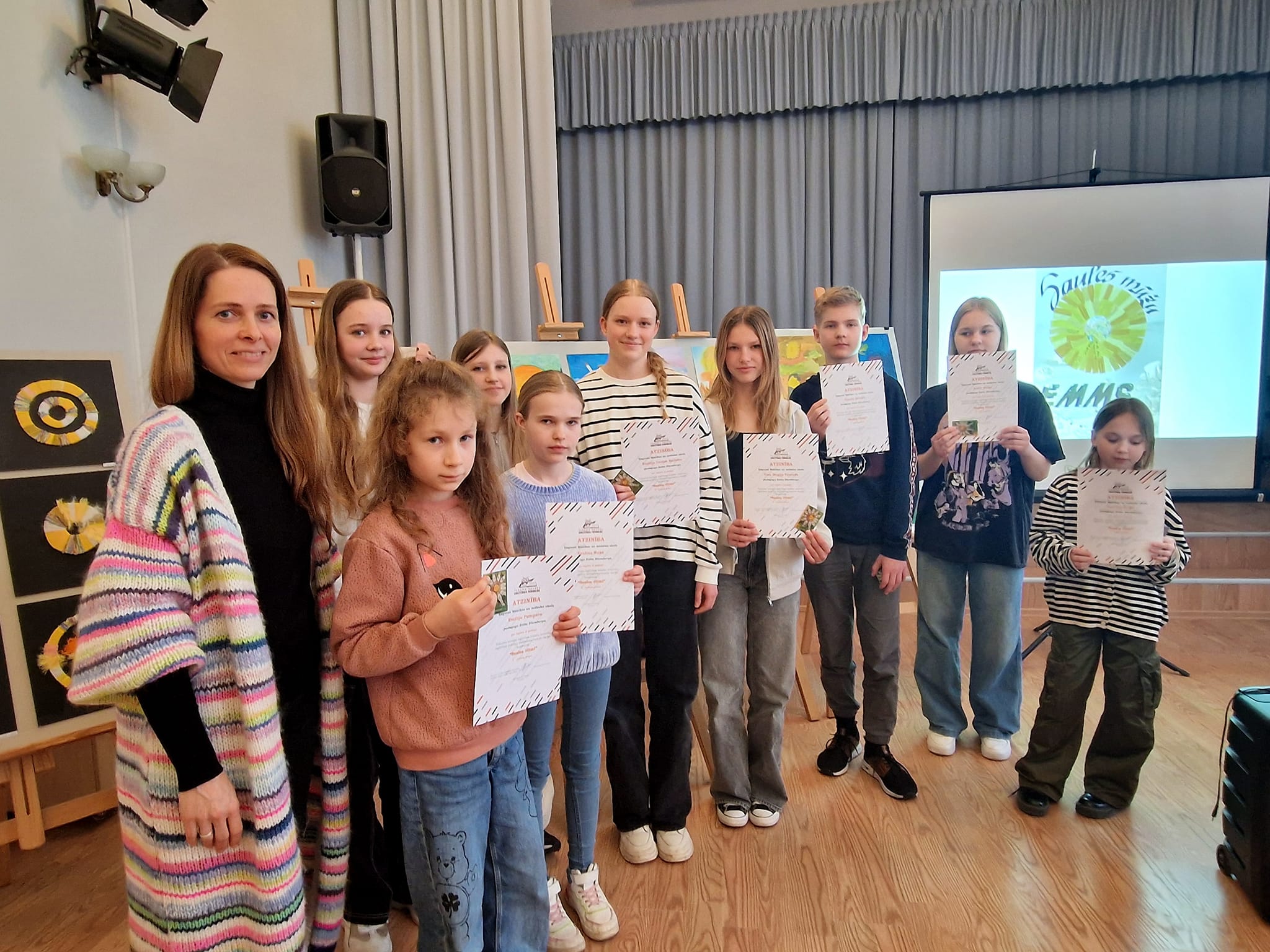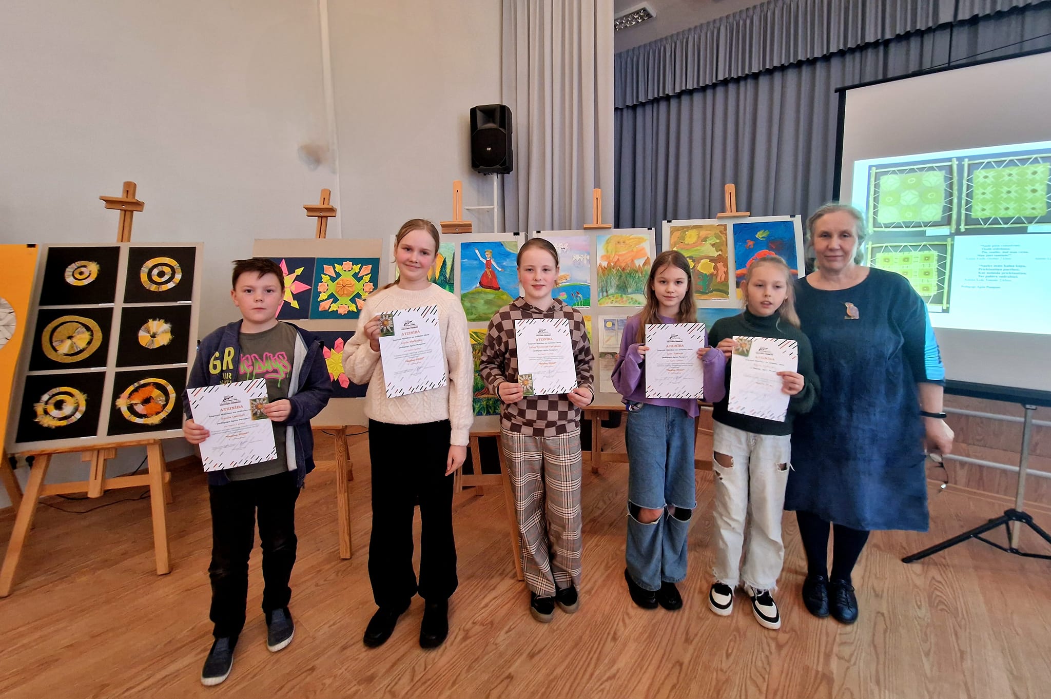 Turpinājumā sekoja radošā konkursa “Saules ritmi” noslēgums, kur audzēkņi katrs pastāstīja par ideju, veidojot savu individuālo darbu, kā arī saņēma Atzinības rakstus, ko bija sarūpējusi Tukuma novada Izglītības pārvalde . Paldies pedagogiem Agitai Pumpurei, Evitai Blumbergai, Jolantai Balodei, Egitai Dumbrei par ierosmi un audzēkņu sagatavošanu. Prieks par mazo dāvaniņu- magnētiņu tika arī katram pirmās, otrās, un trešās vietas ieguvējam.