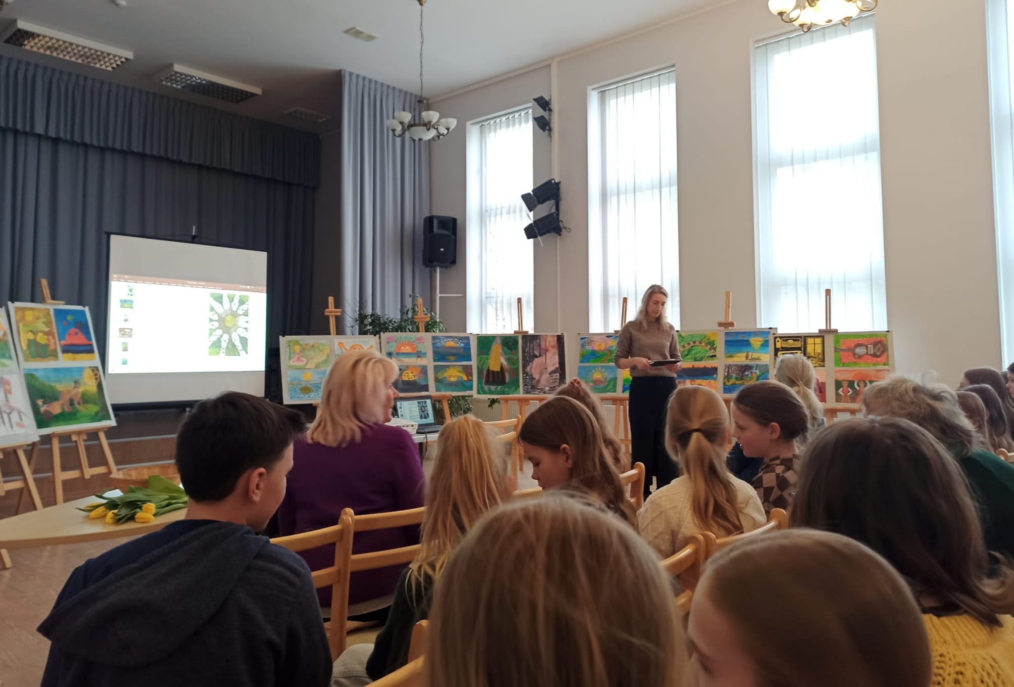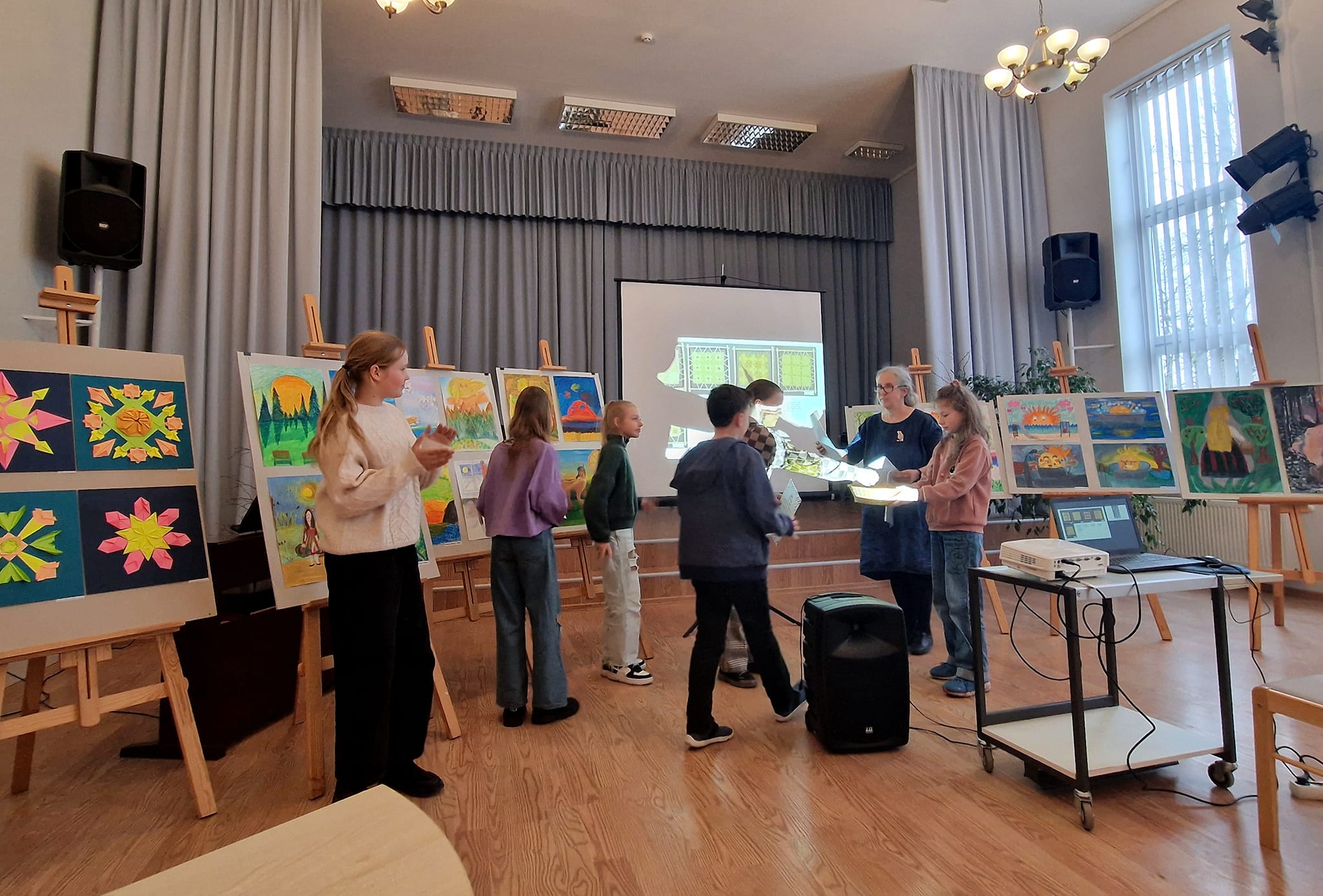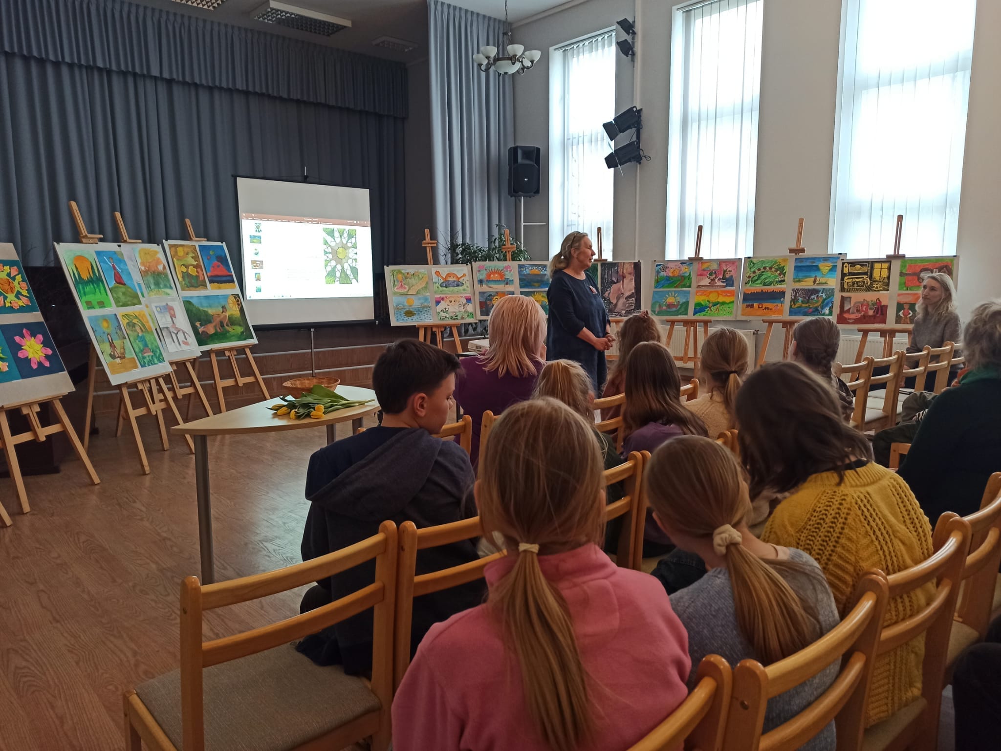 Turpinājumā sekoja radošā konkursa “Saules ritmi” noslēgums, kur audzēkņi katrs pastāstīja par ideju, veidojot savu individuālo darbu, kā arī saņēma Atzinības rakstus, ko bija sarūpējusi Tukuma novada Izglītības pārvalde . Paldies pedagogiem Agitai Pumpurei, Evitai Blumbergai, Jolantai Balodei, Egitai Dumbrei par ierosmi un audzēkņu sagatavošanu. Prieks par mazo dāvaniņu- magnētiņu tika arī katram pirmās, otrās, un trešās vietas ieguvējam.