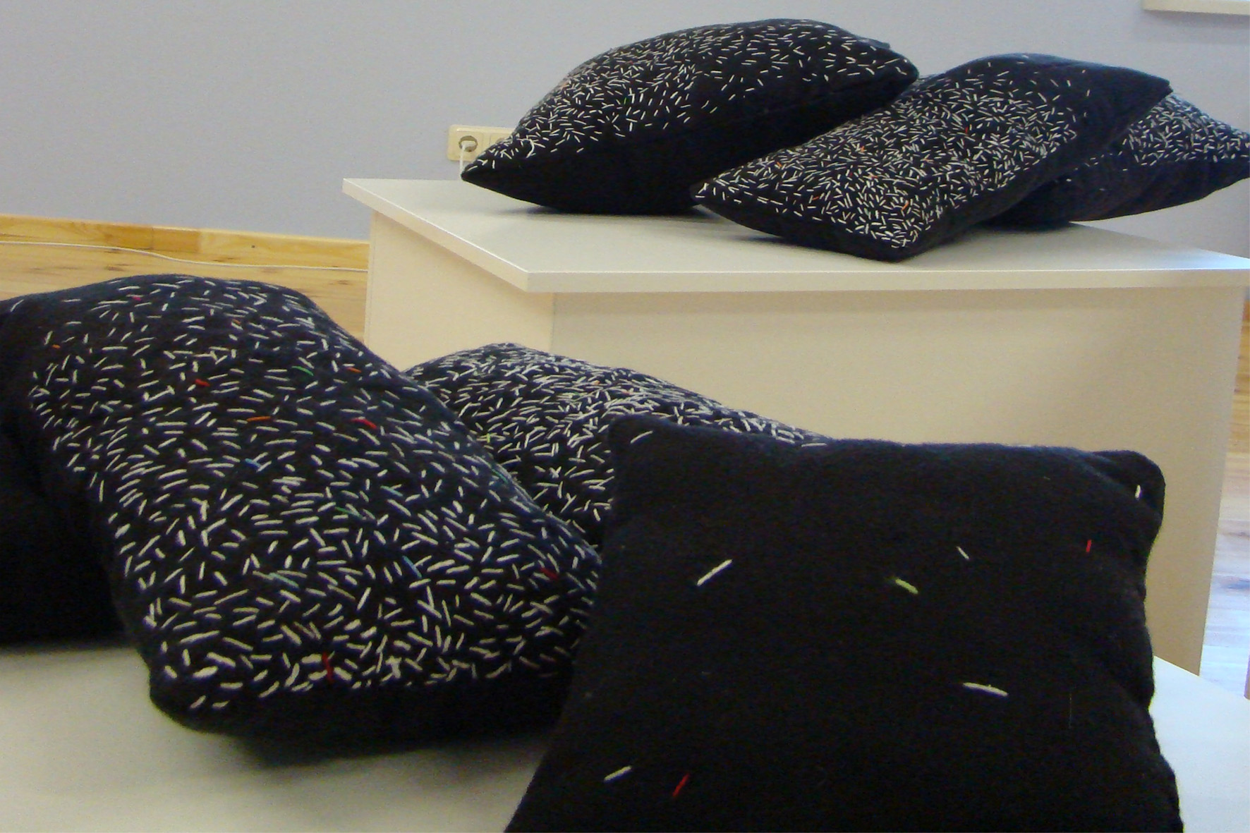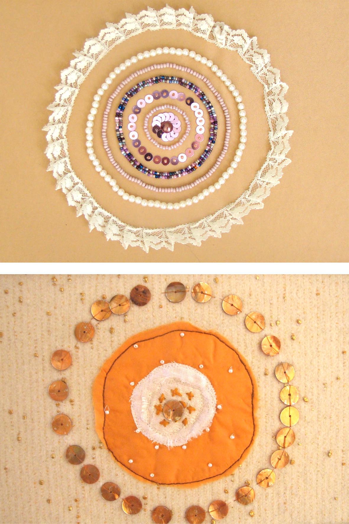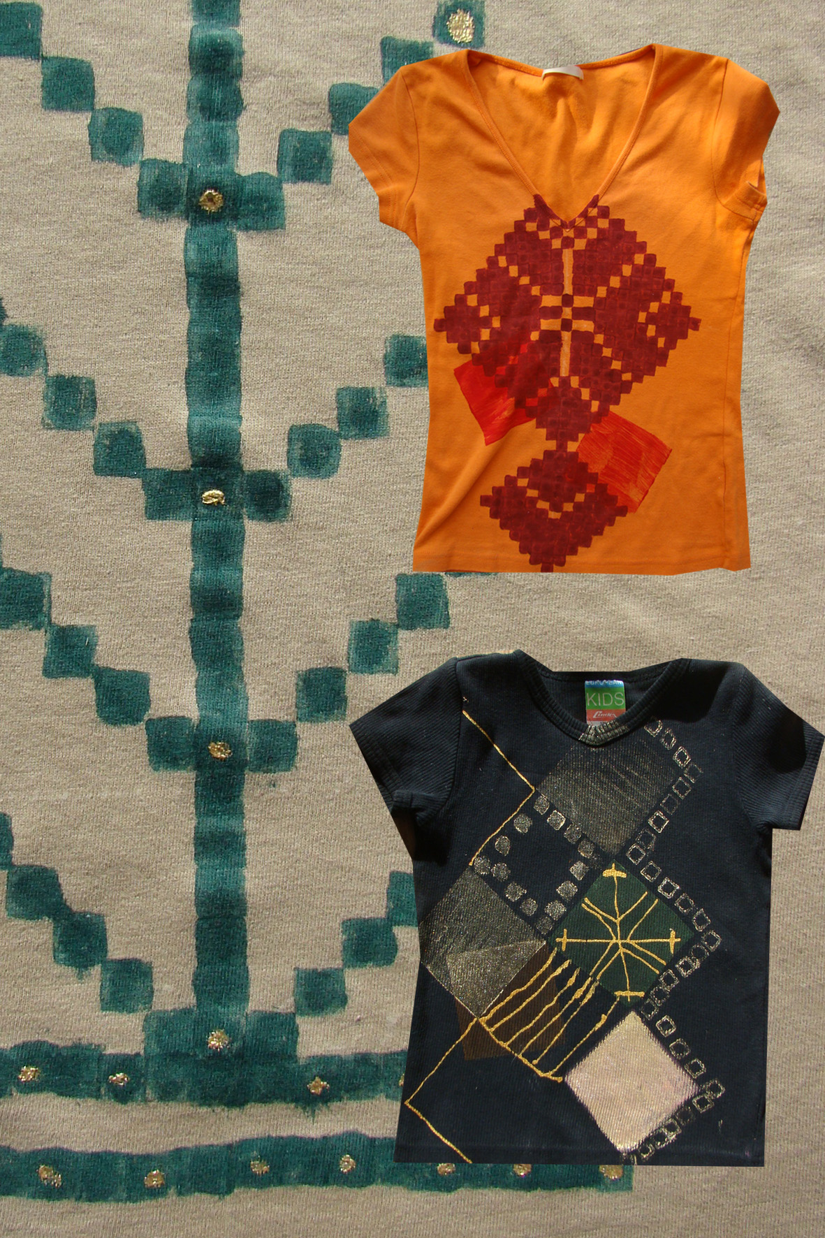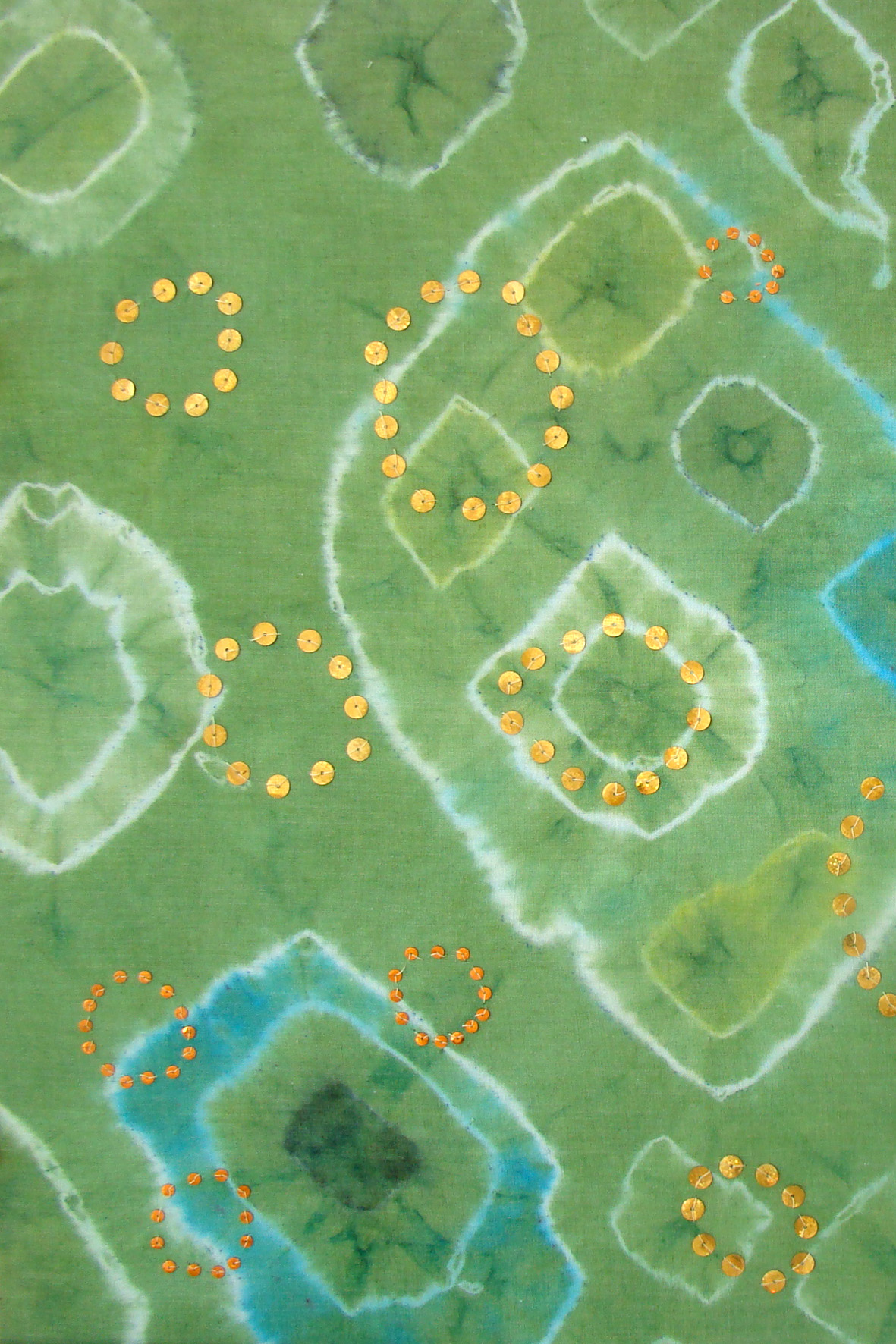 Auduma krāsošana ar sietspiedes un šablona tehnikām. Mācamies šūt un izšūt ar pērlēm, fliteriem, košiem diegiem, auduma gabaliņiem veidojot auduma aplikācijas tehnikā izstrādātus darbus.