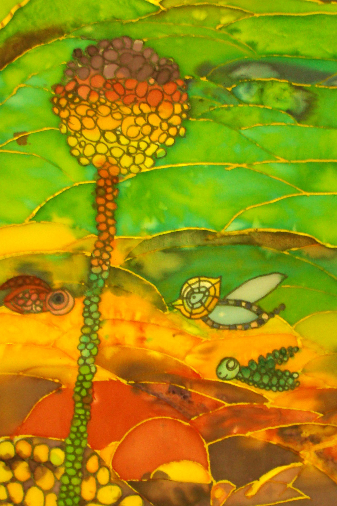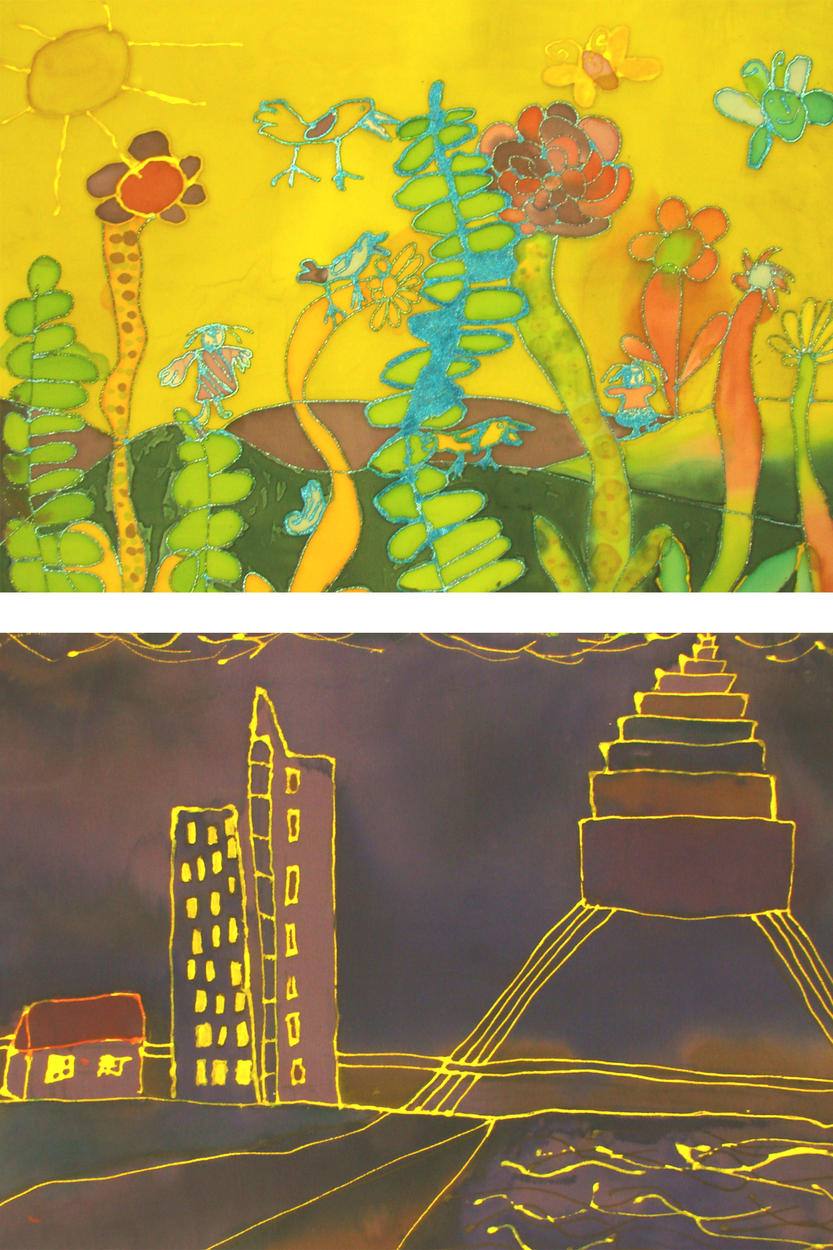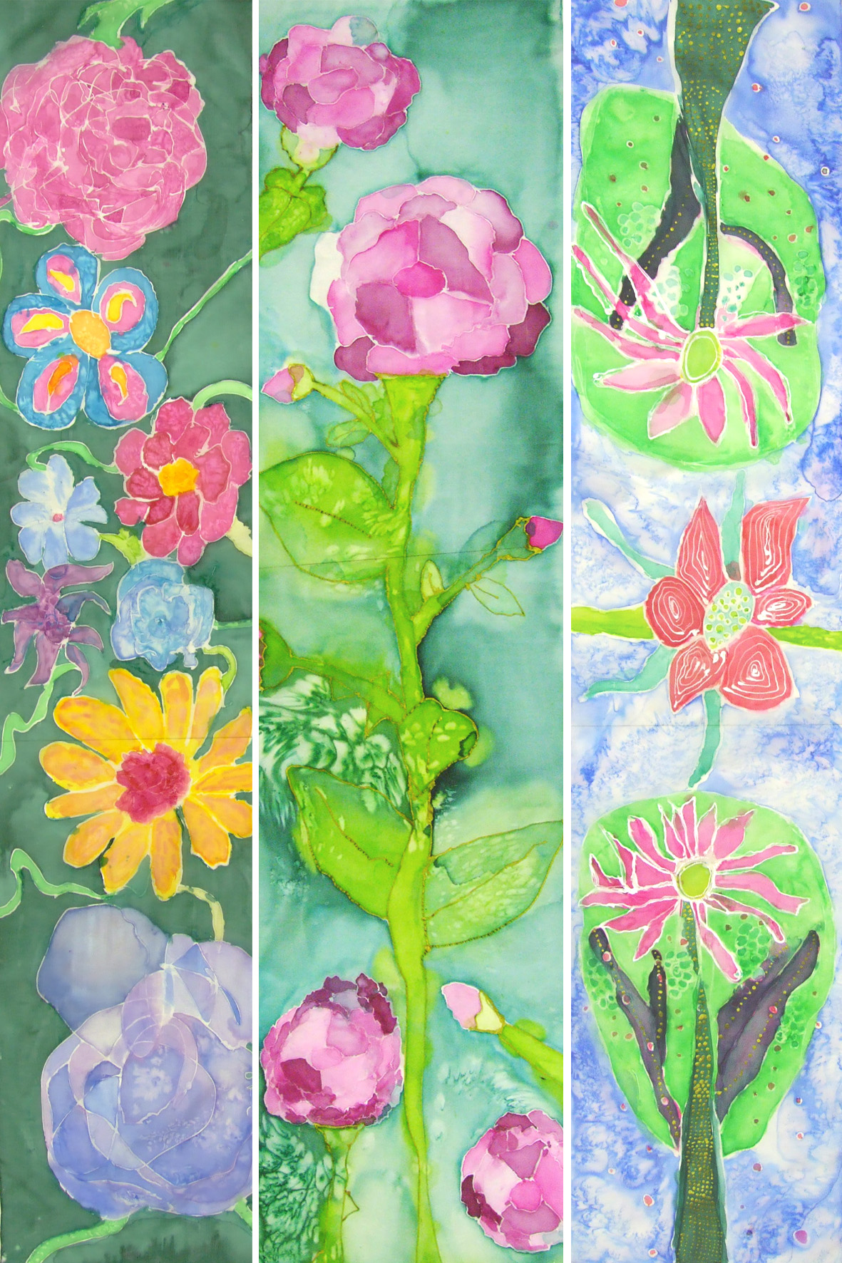 Iepazīstam dažādas tekstiltehnikas kā auduma batika, dzijas krāsošana, zīda apgleznošana ar kontūrkrāsām un karstā vaska batika.