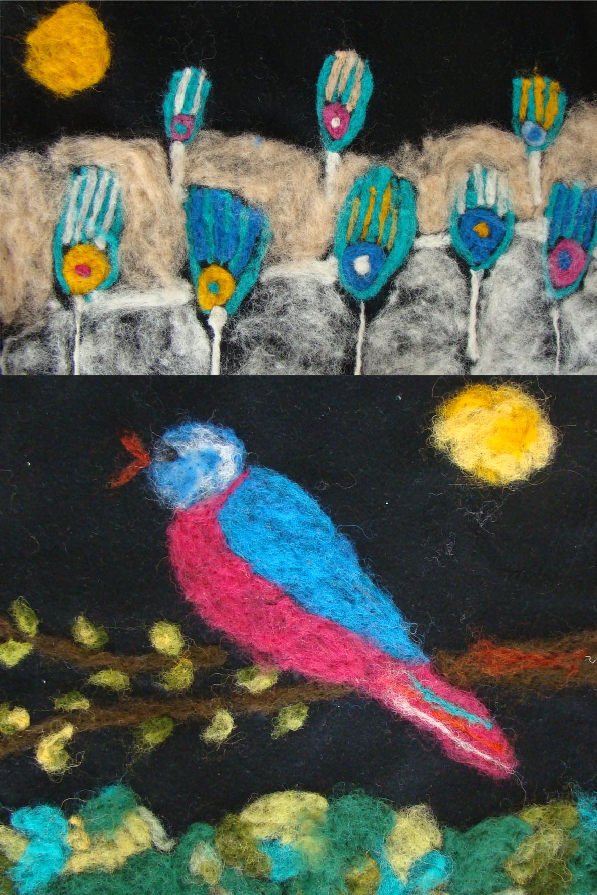 Filcējam dažādās tehnikās, gan ar speciālo filcējamo adatu telpiskus objektus, gan plaknē uz piemērota filca auduma. Iegūstam iemaņas slapjās filcēšanas tehnikā, kur darba gaitā pielieto ziepes un ūdeni.